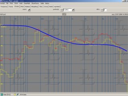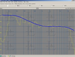 Es gilt nun die gemessene Kurve (gelb) so gut wie möglich an die Auto-Hifi-Referenzkurve (blau) anzupassen. Nach